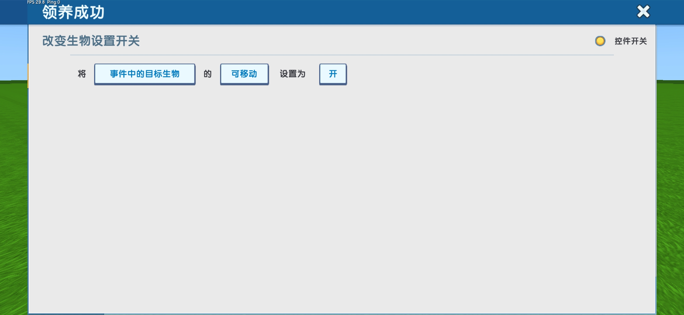 动作3:改变生物设置开关,将事件中的目标生物的“可移动”设置为“开”。