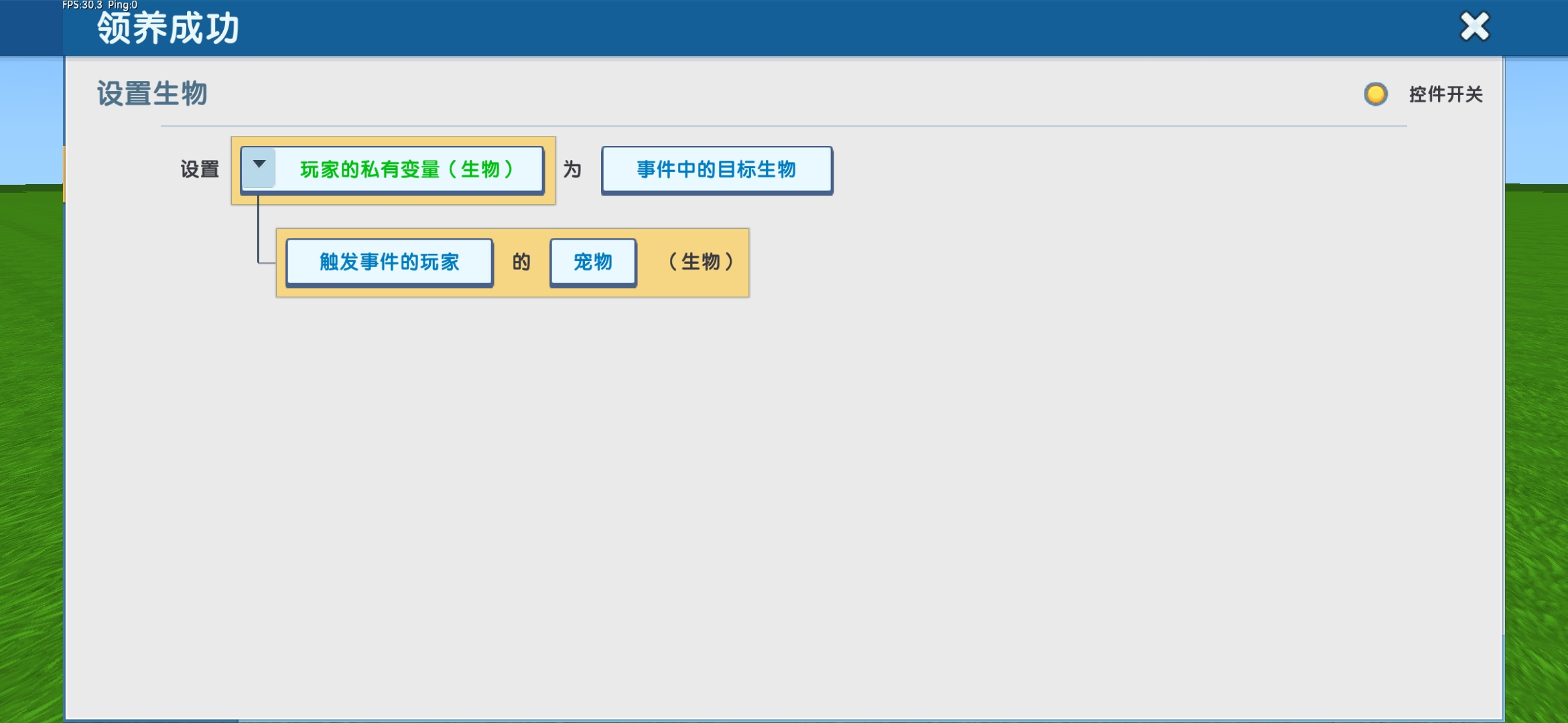 动作4:添加触发事件的玩家进入玩家组【已领养宠物组】(进入玩家组后将不能再召唤宠物)